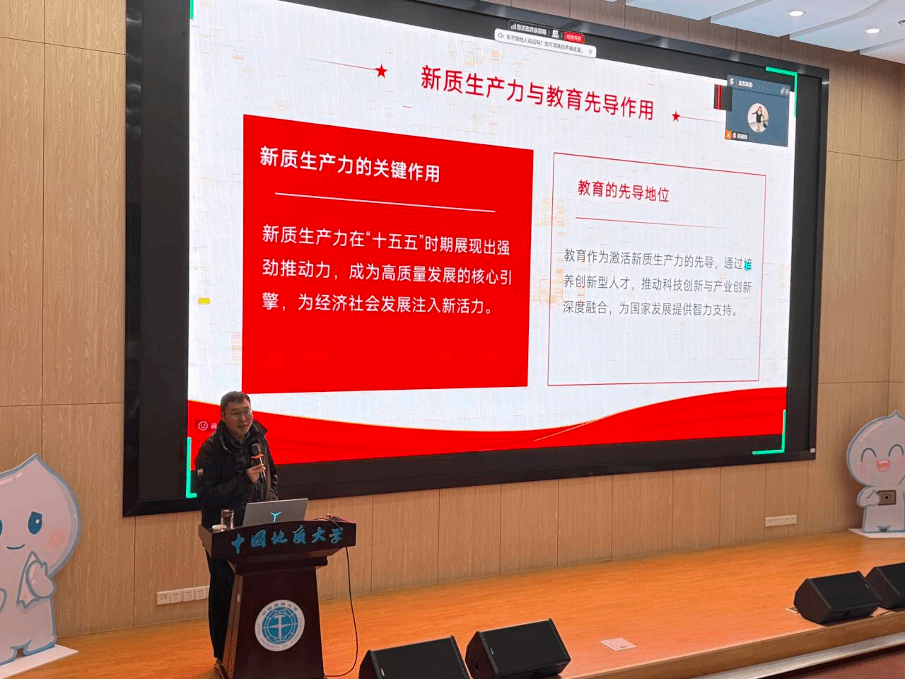 柴波围绕“学习党的二十届四中全会精神—以教育强国支撑中国式现代化建设”主题展开讲授。他介绍,党的二十届四中全会审议通过“十五五”规划建议,将教育、科技、人才列为高质量发展关键战略单元,明确三者一体化推进的新部署,为发展注入新动力。教育作为激活新质生产力的基础和先导,通过培养高素质人才,为科技创新和产业升级提供强大支撑,推动经济高质量发展。他带领大家再次学习《教育强国建设规划纲要(2024—2035年)》相关内容,明确以建设教育强国推动国家高质量发展的重要性,同时结合近期召开的全国高校科技创新工作会议暨基础学科和交叉学科突破计划启动部署会重点内容,鼓励大家要发挥专业特长,扛起“美丽中国”建设的时代重任,为国家发展贡献力量。