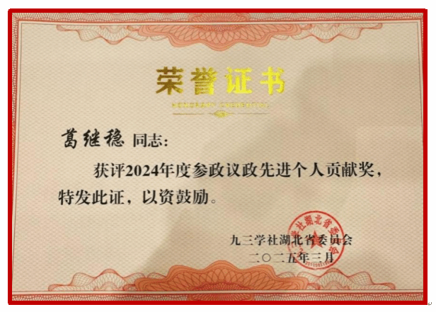 (通讯员马丽媛、胡进 编辑申墁烨)2025年,我校民主党派基层组织和统一战线成员凝心聚力、携手前进,在多领域荣获表彰奖励。其中,我院生物系葛继稳教授获评九三省委会“2024年度参政议政先进个人贡献奖”。