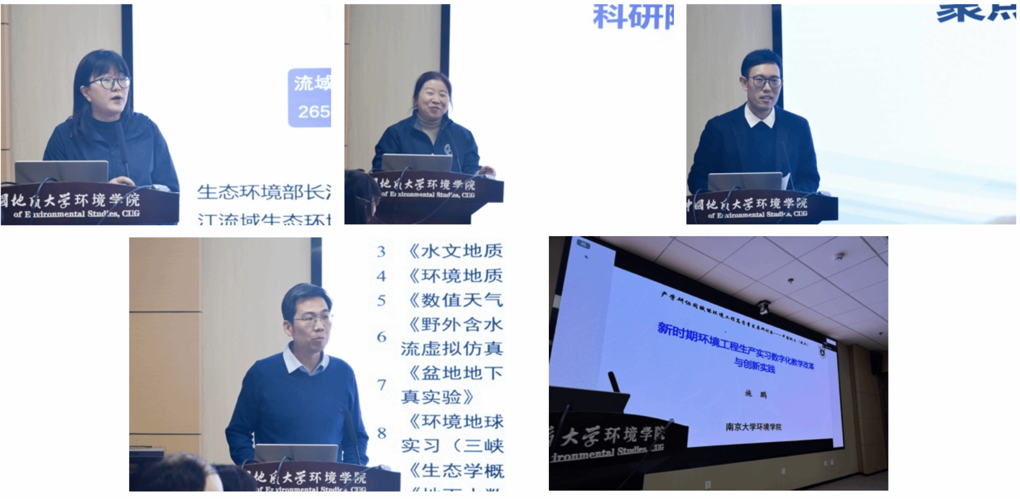 在专题报告环节,与会专家围绕产学研协同育人和专业建设进行了深入交流。生态环境部长江流域生态环境监督管理局监测与科研中心彭玉副主任围绕流域水生态环境监测与保护联合培养实践,分享了实践基地建设与人才培养成效;中国科学院水生生物研究所廖彩萍副处长从科研院所视角,交流了科研资源赋能产学研协同育人的思考;长江产业集团湖北生态创新发展部张峻清高级工程师结合产业实际,探讨了科研成果转化与产创融合路径;南京大学施鹏副教授介绍了环境工程生产实习数字化教学改革的创新实践;中国地质大学(武汉)环境学院孔少飞副院长从多元化人才培养角度,分享了本科招生、培养与就业联动改革的探索经验。报告内容紧扣实践需求,交流充分,为环境工程专业(地质环境方向)高质量发展提供了有益借鉴。