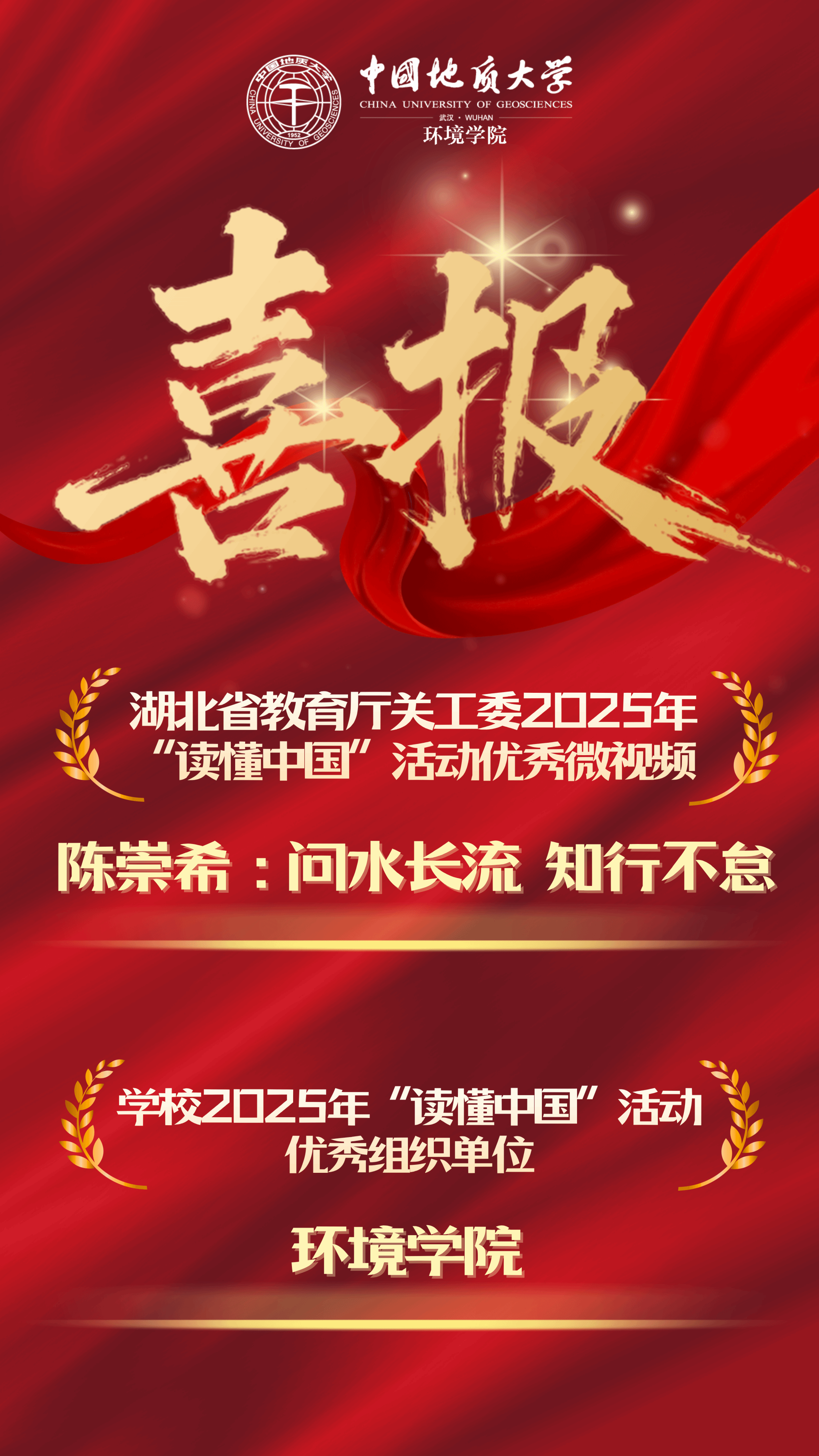 (通讯员/编辑 申墁烨)近日,学校对2025年“读懂中国”活动先进集体和个人进行表彰。我院制作的微视频作品《陈崇希:问水长流,知行不怠》获湖北省教育厅关工委2025年“读懂中国”活动优秀微视频,我院获评学校2025年“读懂中国”活动优秀组织单位。
