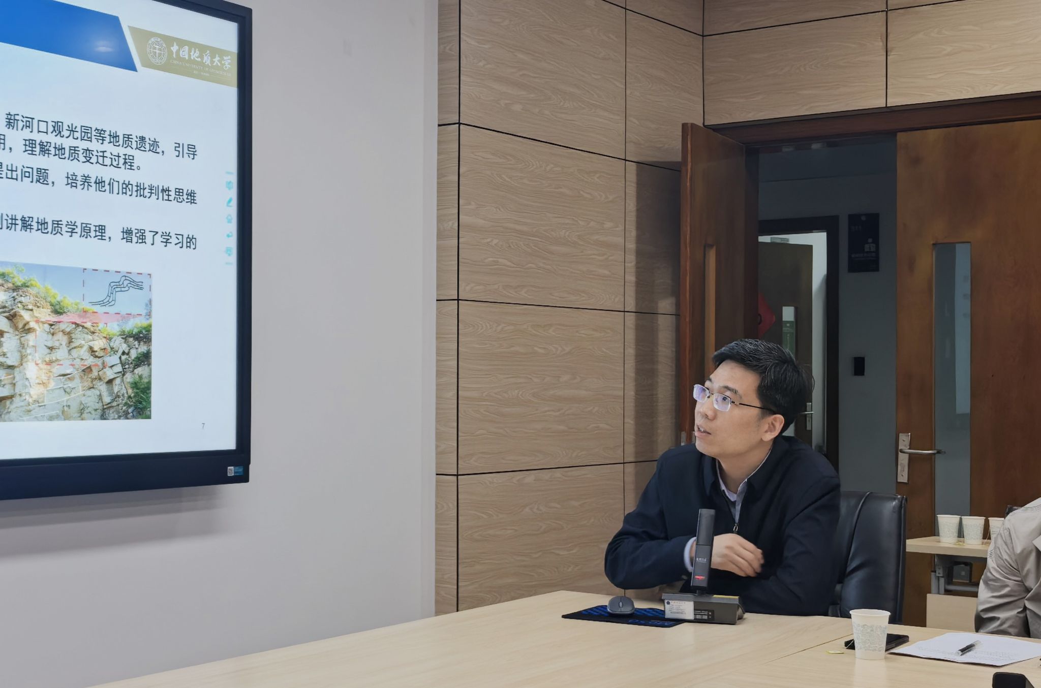 孔少飞汇报学院近年实践教学工作开展情况。学院依托北戴河、周口店、秭归、威海实习基地,以及武汉及周边,不断完善和丰富实践教学体系,并积极拓展海外实习路线,参加海外培训项目,扎实开展环境地质认识实习、地质教学实习、专业教学实习等实践教学活动,深度融入课程思政教育,实践教学实施规范、特色鲜明、成效显著,对于培养学生的专业实践能力与综合素养发挥了重要作用。对于实践教学过程中存在的问题也进行了梳理汇总。