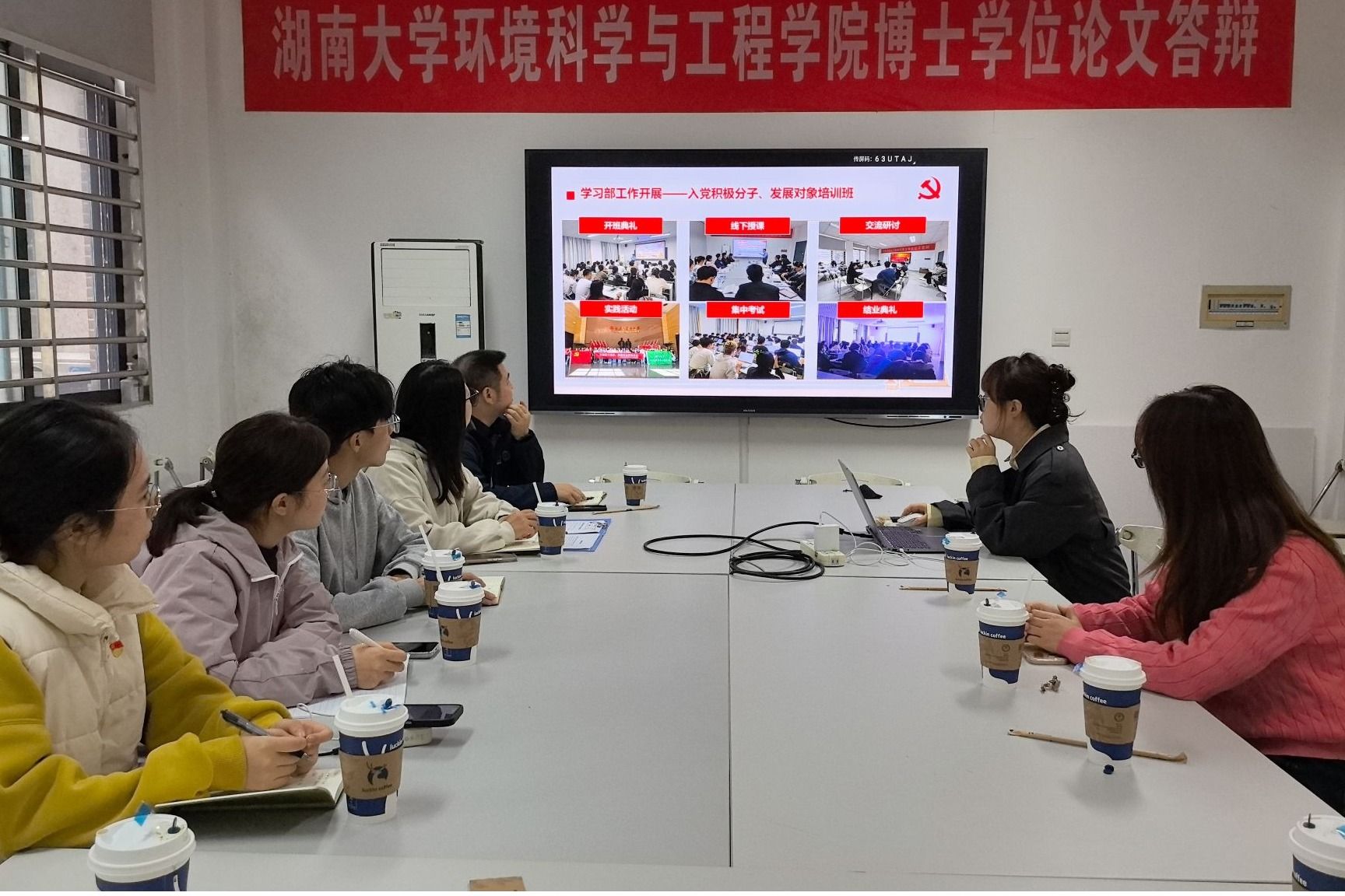 研学团队前往湖南大学环境科学与工程学院,围绕学生党建、立德树人工程、就业创业等工作的做法经验进行调研。该院团委书记尚媛、研究生辅导员黄羽及学生党务中心骨干成员参与座谈。该院学生党务中心负责人详细介绍组织架构与建设模式,重点分享“学生党员积分管理办法”的特色做法。我院环境工程专业大学生党支部围绕“七个有力”建设支部的举措和成效,重点介绍“党建+专业”特色做法的实践探索。与会人员还围绕支部组织生活创新、党员发展质量提升、党建与科研融合等问题开展深入交流。