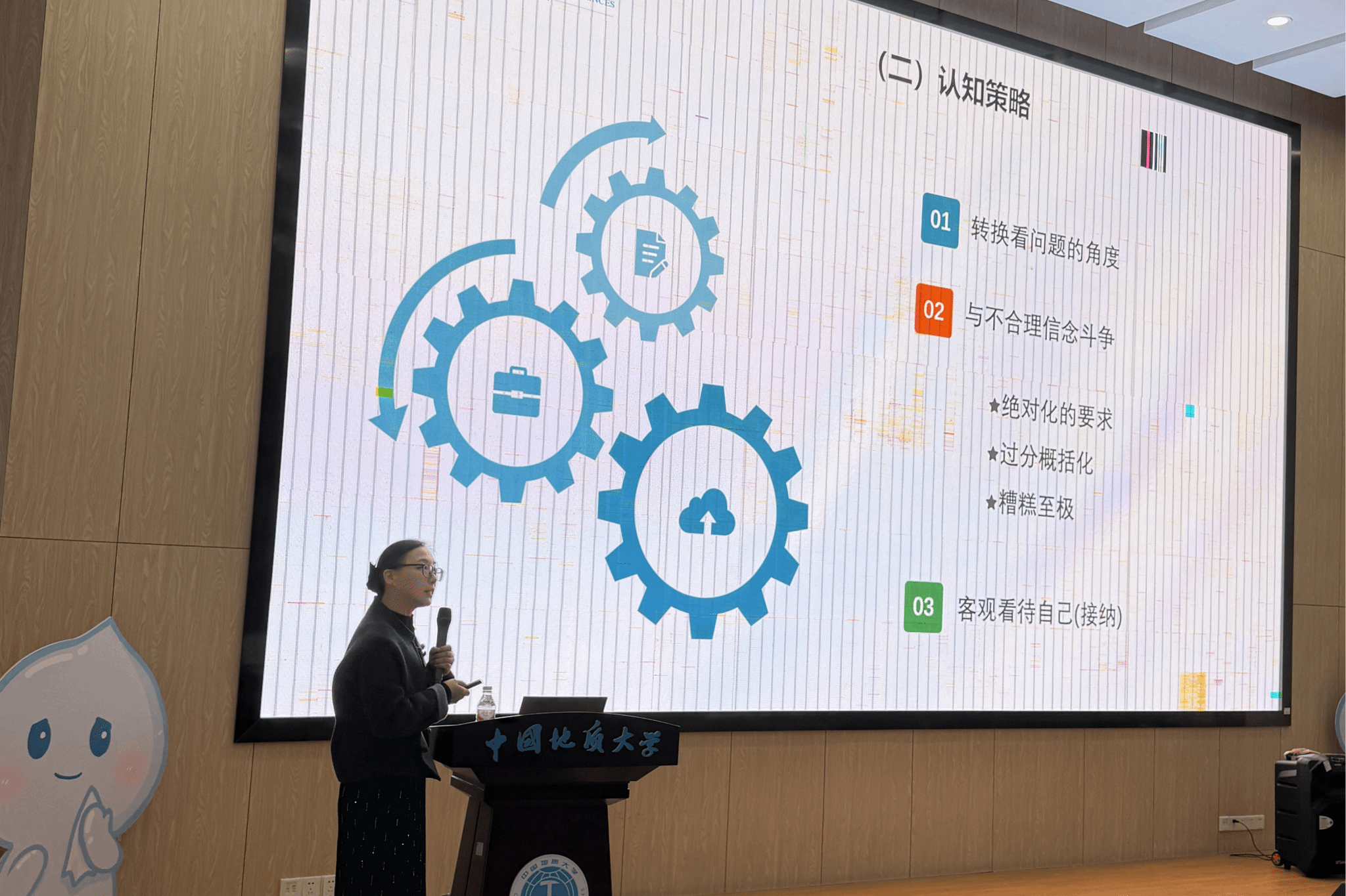 薛春艳从心理危机的定义、高风险心理危机的线索识别、心理危机的预防三方面开展“心理危机的识别与预防”专题培训。她结合典型案例与统计数据详细讲解了双相障碍等精神障碍的早期识别特征,帮助同学们掌握核心判断指标。她从六大策略为同学们提供了实用的心理自助方法,包括健康作息与规律饮食的“生理策略”,转换看问题的角度、与不合理信念斗争、接纳自我的“认知策略”,每天保持适当运动的“运动策略”,适当娱乐、情绪疏导、读书写日记、学会放松、减少电子依赖的“情绪策略”,建立良好的社会支持系统的“关系策略”,寻求专业心理健康机构帮助的“求助策略”。