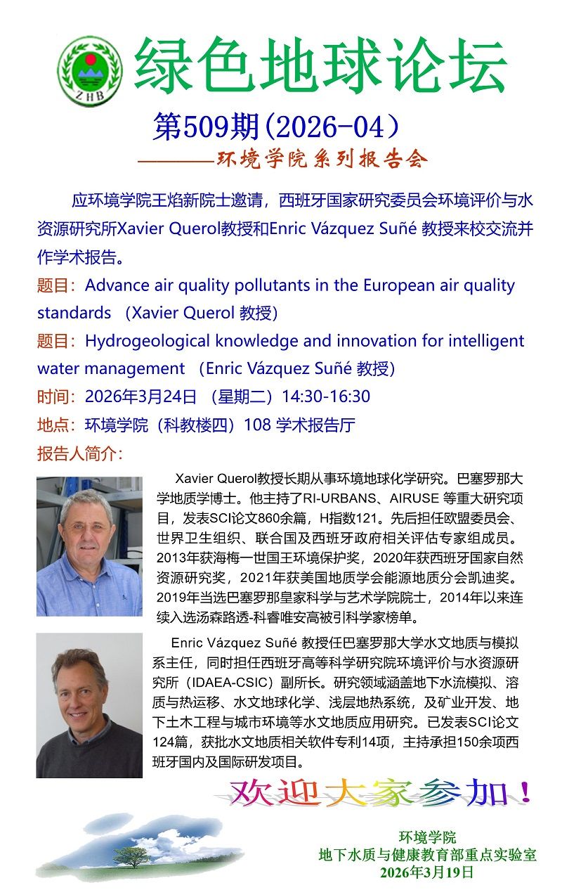 西班牙国家研究委员会环境评价与水资源研究所Xavier Querol教授和Enric Vázquez Suñé 教授学术报告